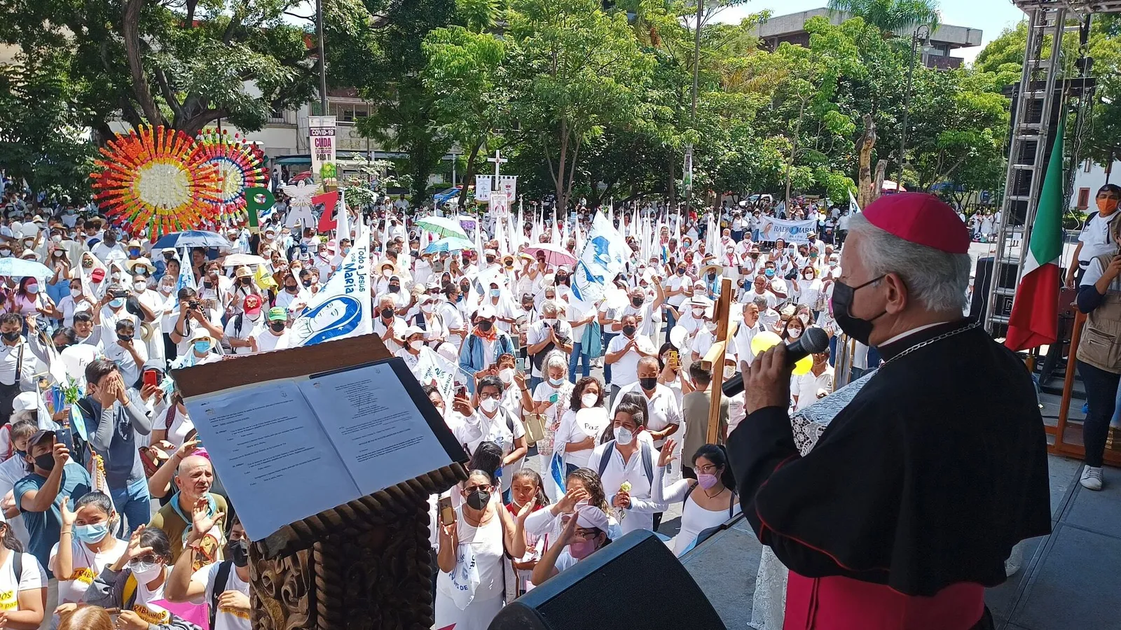 La diócesis de Cuernavaca presidida por Monseñor Ramón Castro Castro, realizó éste sábado 2 de julio la octava caminata por la paz, luego de dos años de realizarse de manera virtual a raíz de la pandemia por la Covid-19, bajo el lema “La paz la construimos todos”.