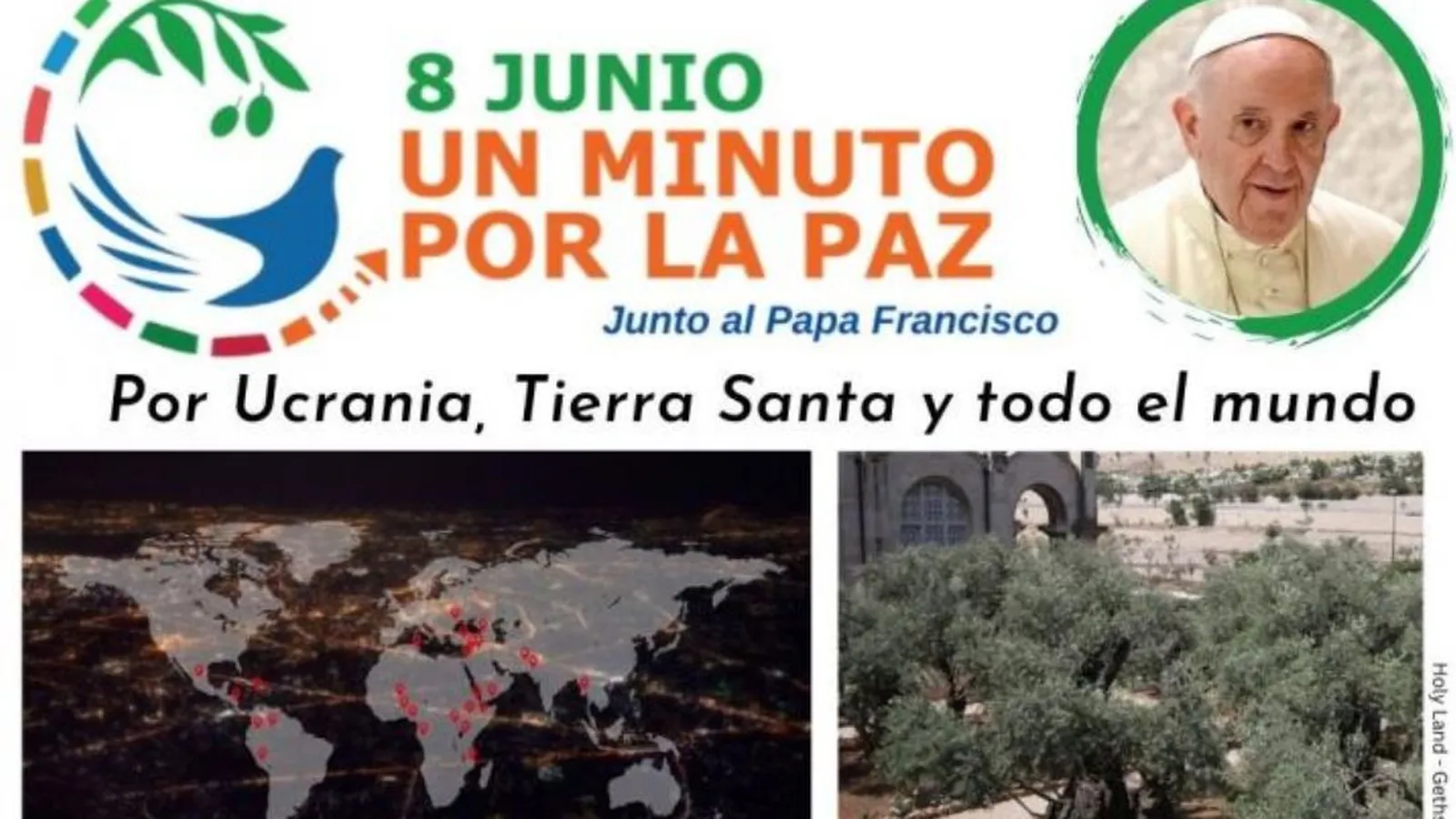 “Un minuto por la paz”, se explica, es una propuesta simple, masiva, testimonial, para ofrecer la oración y asumirse como “promotores de paz, en esta ocasión pidiendo especialmente por la paz en Ucrania y Tierra Santa, y por tantos conflictos hoy abiertos en el mundo”.