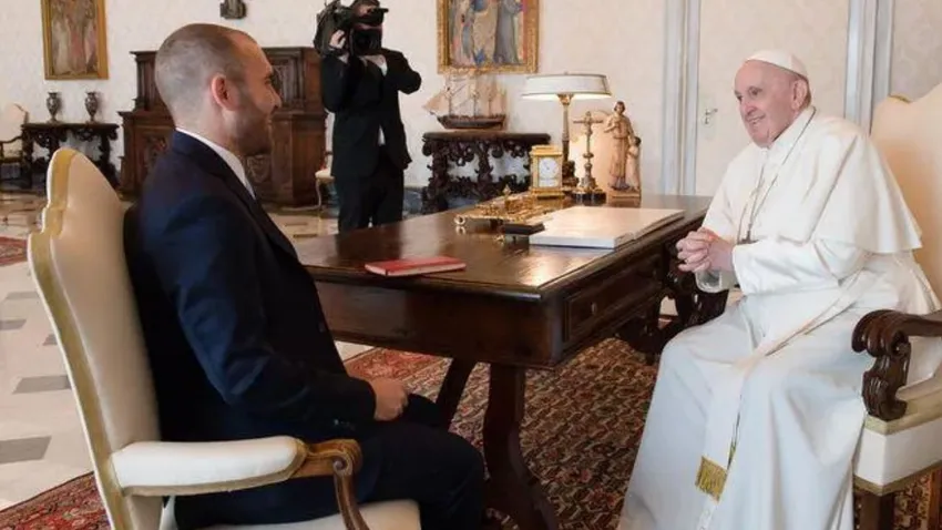 Antes de la reunión de hoy y del seminario que compartieron en febrero del año pasado, el primer encuentro de Guzmán con Francisco fue en mayo de 2019, con una reunión en la residencia de Casa Santa Marta, en la que el ahora ministro estuvo acompañado por el Premio Nobel de Economía Joseph Stiglitz en el marco de una actividad de la fundación pontificia Scholas Occurrentes.