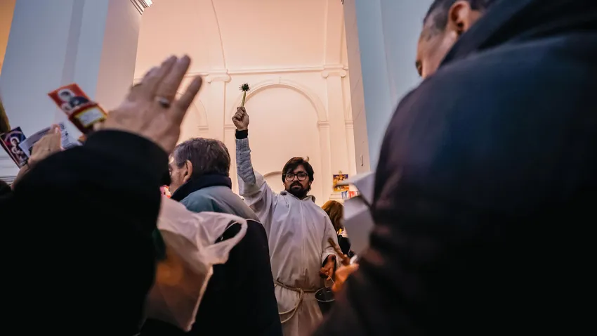 Desde antes del amanecer, la fila para visitar la parroquia en el barrio porteño de Liniers estaba repleta de feligreses con una estampita del santo y una espiga de trigo para ser bendecida; algunos para "agradecer" o "cumplir la promesa" por lo que él ya les dio, otros pidiendo que nunca les falte el pan o el trabajo a sus familias.