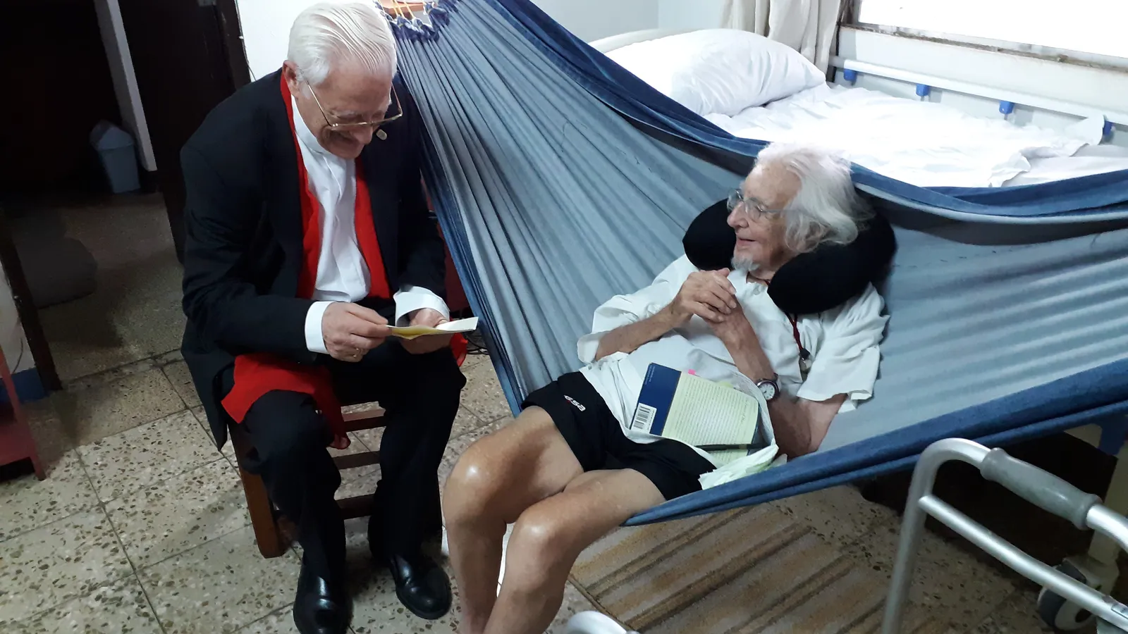“Buenos días, me honra mucho su visita”, dice Ernesto al padre Ángel. El poeta nos estaba esperando y se nos adelantó al saludo. Nos recibe con su cotona blanca de siempre, meciéndose levemente en una hamaca color azul. Inmediatamente, otro recuerdo al Solentiname.