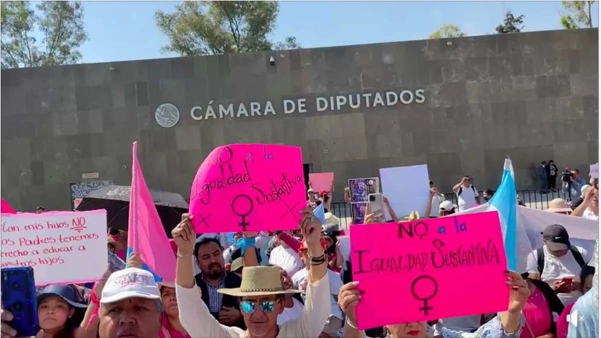 A las afueras de la Cámara de Diputados, pidieron que se respete el derecho de los padres para escoger la educación de sus hijos y enfatizaron que tienen la libertad de cuestionar iniciativas que atentan contra la niñez y la mujer.