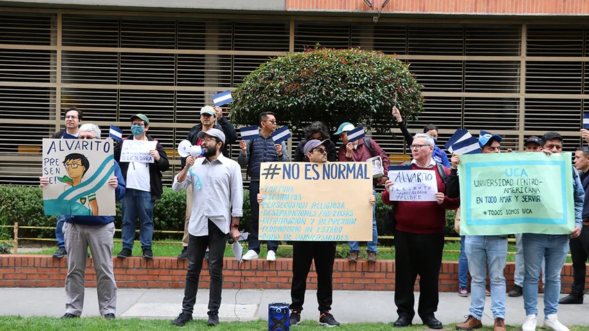 Durante el plantón los dirigentes del acto dejaron una carta a la embajadora de Nicaragua en Colombia, Milagros del Carmen Urbina Rocha, con siete reivindicaciones. Entre las cuales se pide que se revierta la decisión arbitraria e ilegal que pesa sobre la UCA y sobre la Compañía de Jesús en Nicaragua, se permita la legítima defensa y se restablezca el estado de derecho. Se pide, además, la liberación de Monseñor Álvarez y de todos los presos políticos y detenidos arbitrariamente y la apertura de un diálogo que permita el restablecimiento de la verdad y de la justicia como condición de paz y la posibilidad de una transición pacífica hacia el Estado de Derecho y el respeto a los Derechos Humanos.