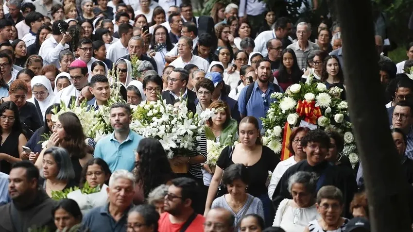 La ceremonia religiosa de último adiós y entierro tuvo lugar en el polideportivo de la UCA y congregó a fieles católicos salvadoreños, sacerdotes, maestros, alumnos, personal de la universidad y del Instituto de Derechos Humanos (Idhuca) de la institución de educación superior.