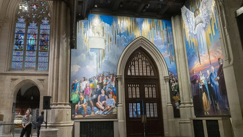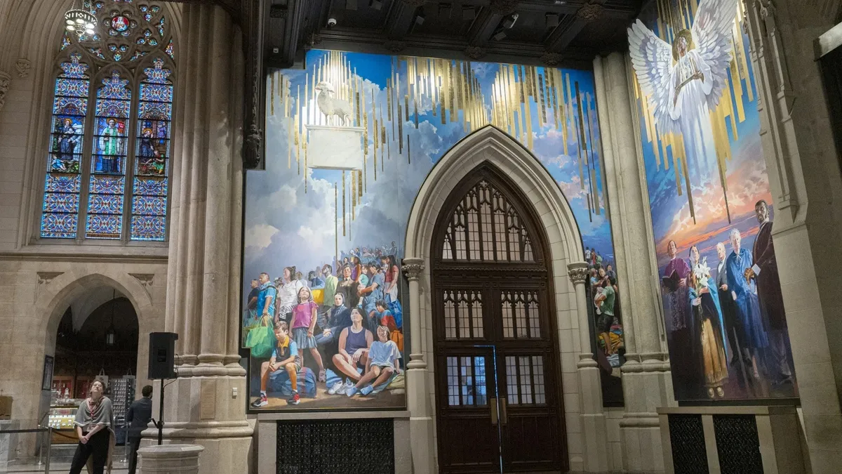 Entre las representaciones religiosas del mural, destaca la figura de un ángel negro con rastas, inspirado en un modelo de Harlem. El artista Adam Cvijanovic explicó que esta elección no fue motivada por políticas de diversidad, sino por una conexión personal con el modelo. La obra también incluye la figura de Kateri Tekakwitha, la primera indígena norteamericana canonizada, y la madre del cardenal Dolan, junto a inmigrantes irlandeses.