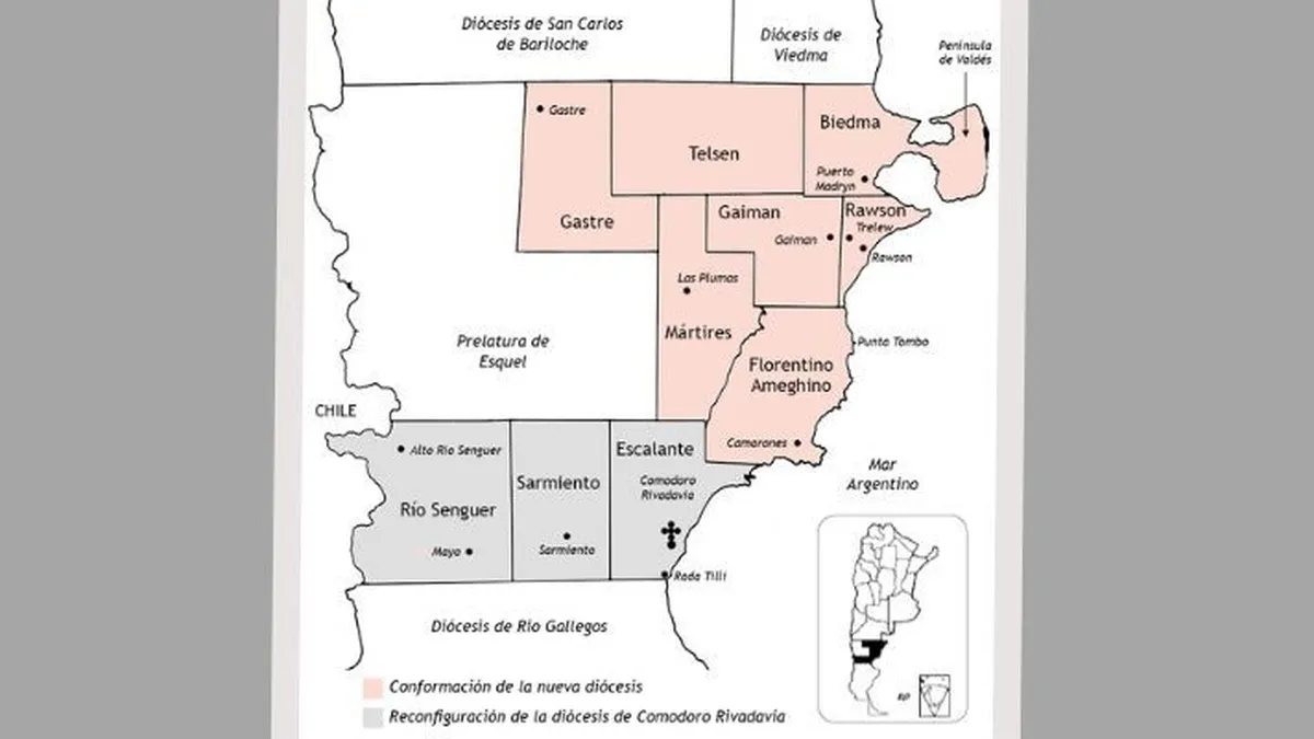 Con la creación de la diócesis de Rawson, la Argentina cuenta con 74 circunscripciones eclesiásticas: 14 arquidiócesis, 49 diócesis, 4 prelaturas territoriales, 3 eparquías (diócesis orientales), 1 exarcado (prelatura oriental), y 2 ordinariatos.