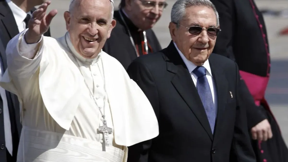 2012. Benedicto XVI visita Cuba y se reúne con el entonces presidente, Raúl Castro. Exige libertad religiosa, pero critica las sanciones de Estados Unidos contra la isla (asumiendo un punto clave del argumentario de La Habana). Cuba indulta a 2.991 presos, algo que se interpreta como gesto de buena voluntad, y declara feriado el Viernes Santo.