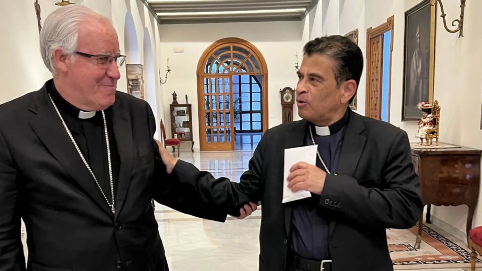 Saiz Meneses compartió dos fotografías con el obispo Álvarez, las primeras públicas desde que lo excarcelaron y expulsaron de Nicaragua en enero pasado.