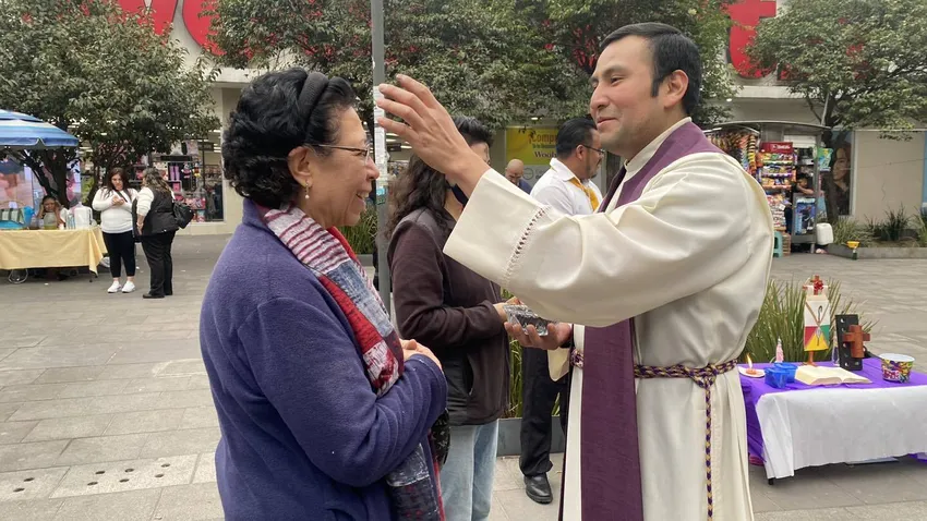 Habitantes de la Ciudad de México pudieron recibir este miércoles de ceniza cuando salían del Sistema de Transporte Colectivo, Metro, algunos se mostraron extrañados, pero la mayoría se formaba y realizaba una oración en un pequeño altar que se instaló a las afueras del Metro al sur de la ciudad.