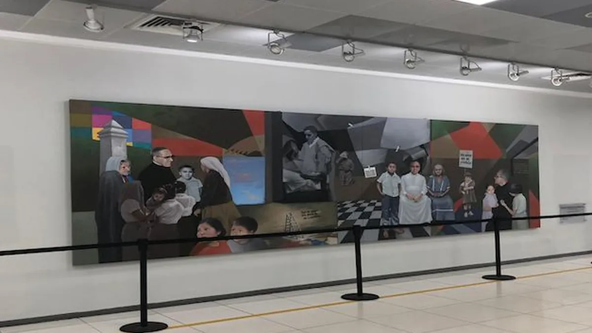 Detalló que la obra, del artista Rafael Valera y que muestra distintas estampas de la vida del religioso, fue presentada el 24 de marzo de 2010, bajo el Gobierno del expresidente Mauricio Funes, en el marco del 30 aniversario del magnicidio de Romero.
