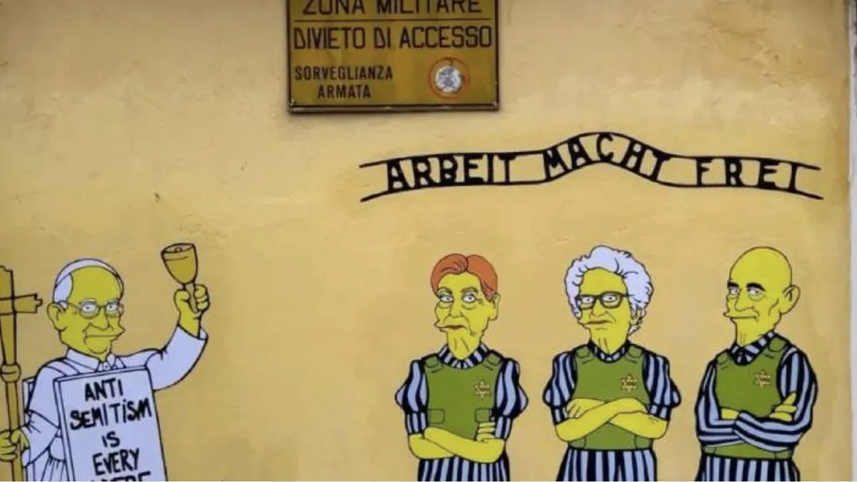 Francisco y tres supervivientes italianos del Holocausto protagonizan un mural reivindicativo del artista aleXsandro Palombo en Milán (norte) para conmemorar el 80º aniversario de la liberación de Auschwitz-Birkenau y denunciar que "el antisemitismo está en todas partes".