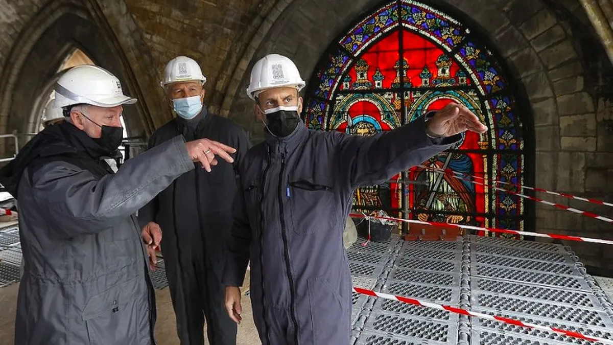Desde el incendio de Notre Dame de París el 15 de abril de 2019, el mandatario ha visitado periódicamente el templo francés para supervisar el progreso de su reconstrucción. El gobernante francés afirmó que desde entonces, toda la nación se está reconstruyendo.