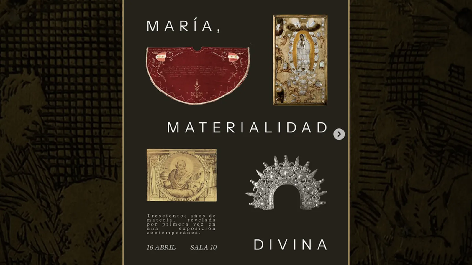 «La muestra pone en diálogo la espiritualidad con la materialidad, haciendo visible cómo la fe mariana se expresó en materiales como la piedra de Huamanga, la madera de maguey, la plata, el pan de oro, entre otros elementos», indicó el museo, ubicado en el acomodado distrito de Barranco.