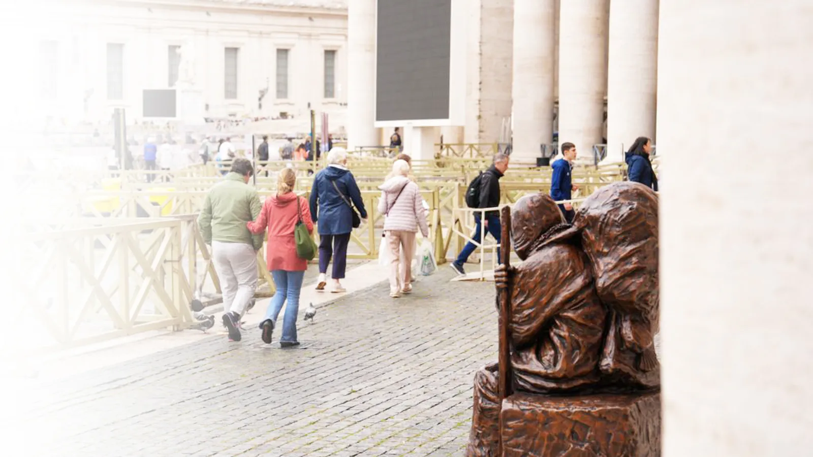 La obra, que se quiso titular como “Sed acogedores” y representa la figura de un hombre sin hogar alado y de bronce que está sentado en un banco, es, como reconoce el artista, “la última obra de arte que el Papa pudo ver acabada antes de morir, cerca de su residencia”. No obstante, no es la primera creación de este reconocido escultor que se eleva a la sombra de la columnata de Gian Lorenzo Bernini, puesto que en 2019 se estrenó “Ángeles sin saberlo“, en que un grupo numeroso de refugiados se levantan encima de una embarcación.
