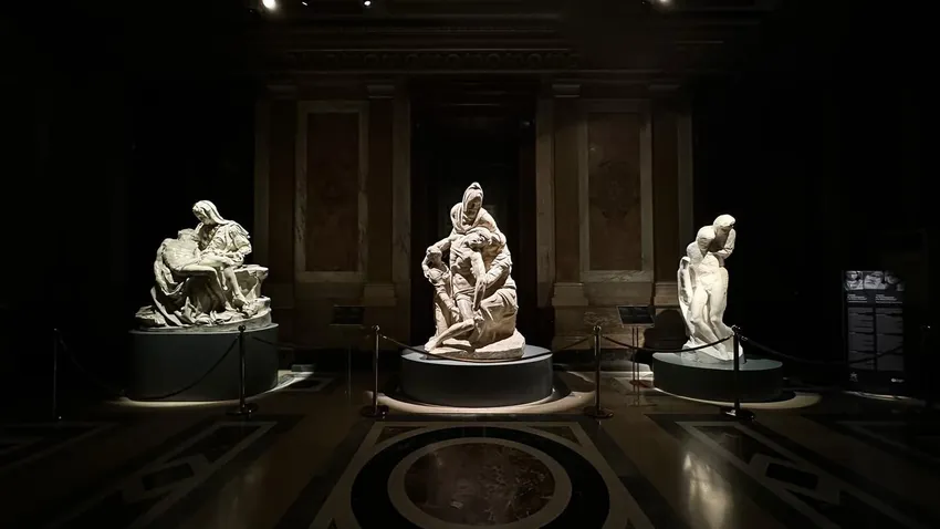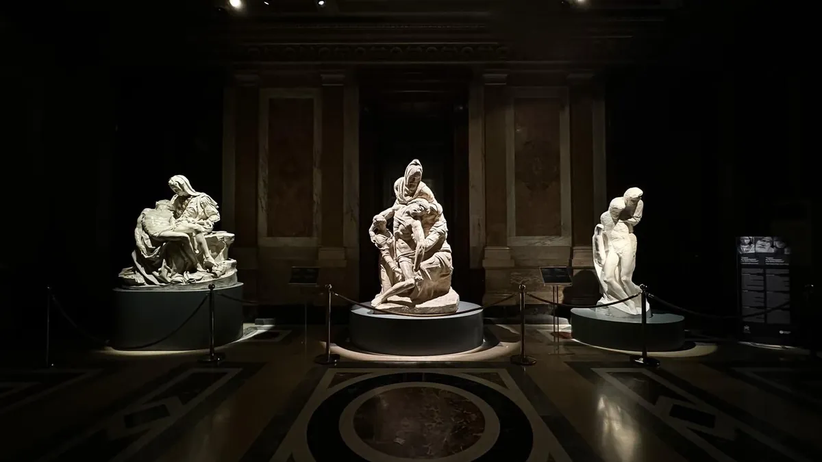 La exposición está instalada en la entrada de la Pinacoteca Vaticana y permitirá a los visitantes "admirar la extraordinaria plástica de Buonarroti a través de los tres calcos de yeso realizados entre los siglos XIX y XX de sus famosas representaciones de la Piedad: la Vaticana, la Bandini y la Rondanini".