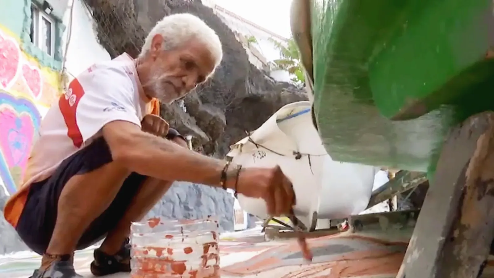 "Estamos en Bocacangrejo y él es Rafa quien, un buen día, en medio de la tragedia que provocó la erupción del volcán Cumbre Vieja en La Palma, decidió combatir la tristeza, la desolación, y todas las penas que esta trajo consigo con belleza, con colores, con corazones"