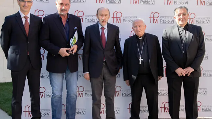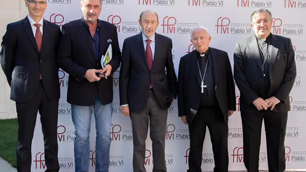 Alfredo Pérez Rubalcaba con el cardenal Cañizares y Ginés García Beltrán