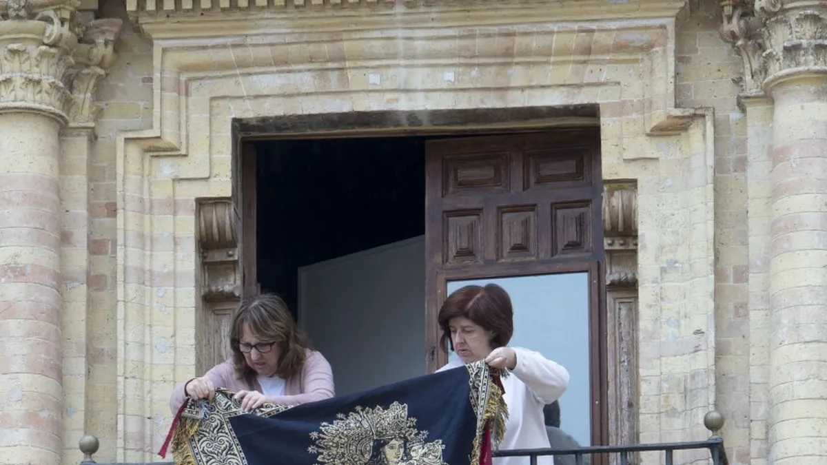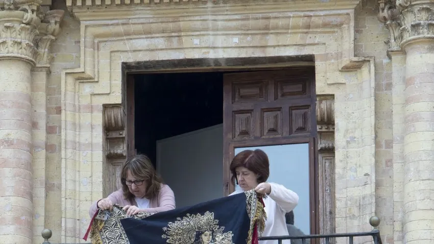 La Basílica de la Virgen de los Desamparados ha colocado en los balconcillos de sus fachadas los reposteros y colgaduras de sus grandes solemnidades con la imagen de la Virgen como "gran invocación de ayuda y súplica a la Mare de Déu ante la crisis sanitaria actual, para la salud de los enfermos y la protección de los desamparados".