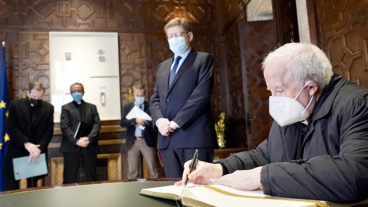 El cardenal ha estado acompañado por el Vicario General, Vicente Fontestad, y el secretario del Arzobispado, Francisco Castelló. Ambas instituciones han dado noticia cada una por su parte con una escueta nota en la que no han entrado en el fondo de lo tratado por las reunidos, lo más probable por lo delicado de alguna materia, aunque extraña no se le haya dado la importancia debida con lo que respecta a Ucrania. El encuentro se ha enmarcado dentro de las habituales relaciones institucionales entre la Iglesia y la Generalidad.