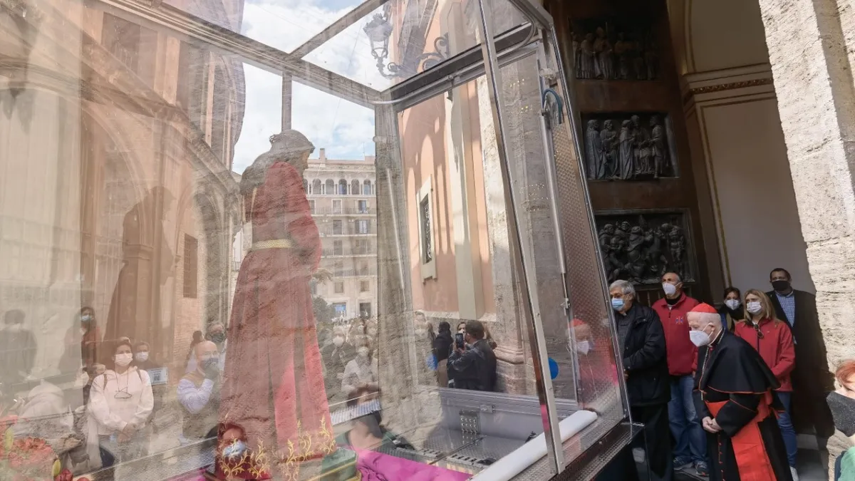 El recorrido ha terminado a las dos y media de la tarde en la Real Basílica de la Virgen donde ambas imágenes se han encontrado. En la puerta al pie del templo esperaban la llegada de la visita de Jesús de Medinaceli el cardenal arzobispo de Valencia, Antonio Cañizares, y el rector de la Real Capilla, Jaime Sancho. El prelado ha saludado y dirigido una oración ante ellas.