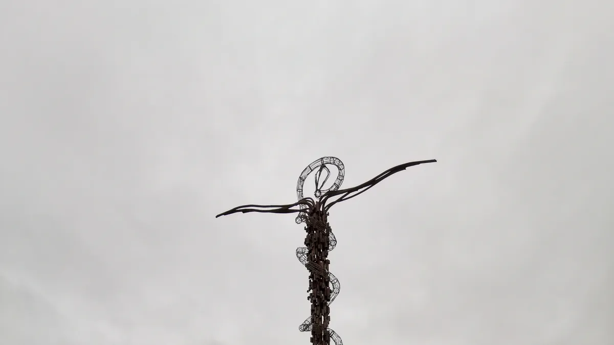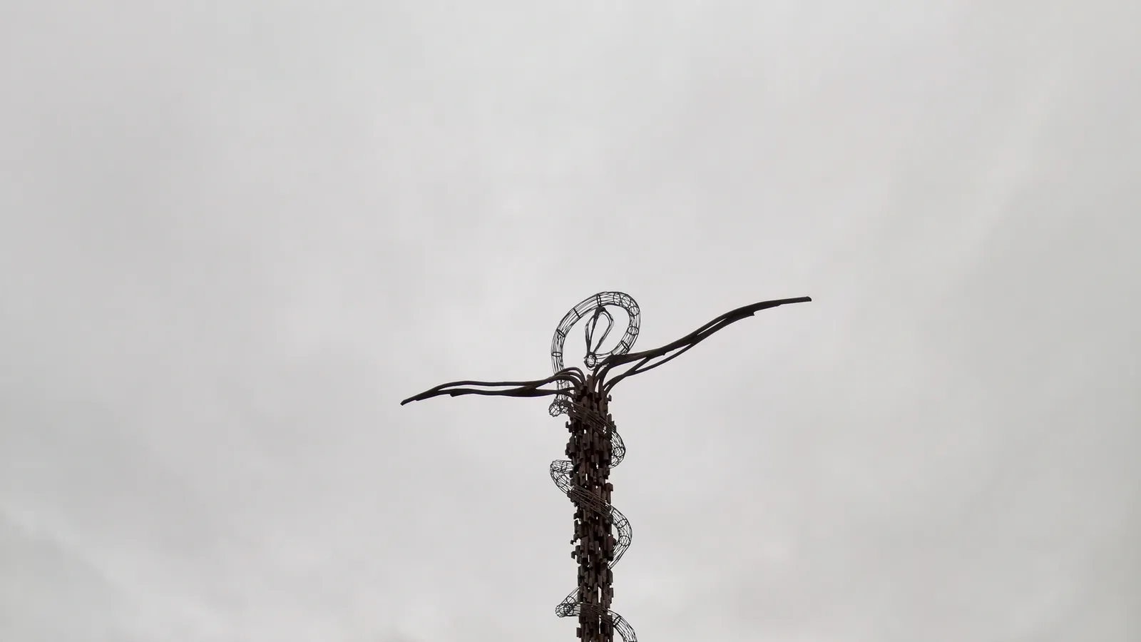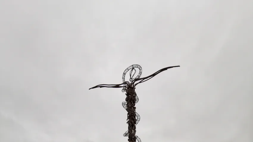 Frente a la fachada del templo los franciscanos han instalado una cruz de hierro a la que enrolla una serpiente de cobre. Recuerda la historia de Moisés y la serpiente que cuenta cómo el pueblo de Israel habló contra Dios y su profeta, cuando caminando hacia la Tierra Prometida se desanimaron por el cansancio y la falta de comida. El Señor envió entonces serpientes que provocaron la muerte de muchos hebreos. Arrepentidos, pidieron perdón a Moisés, a quién Dios ordenó que colocase una serpiente en una asta para que cada vez que alguien fuese mordido por una de esas víboras, consiguiera la salvación simplemente mirando el animal de bronce que Moisés fabricó (Números 21:4-9).