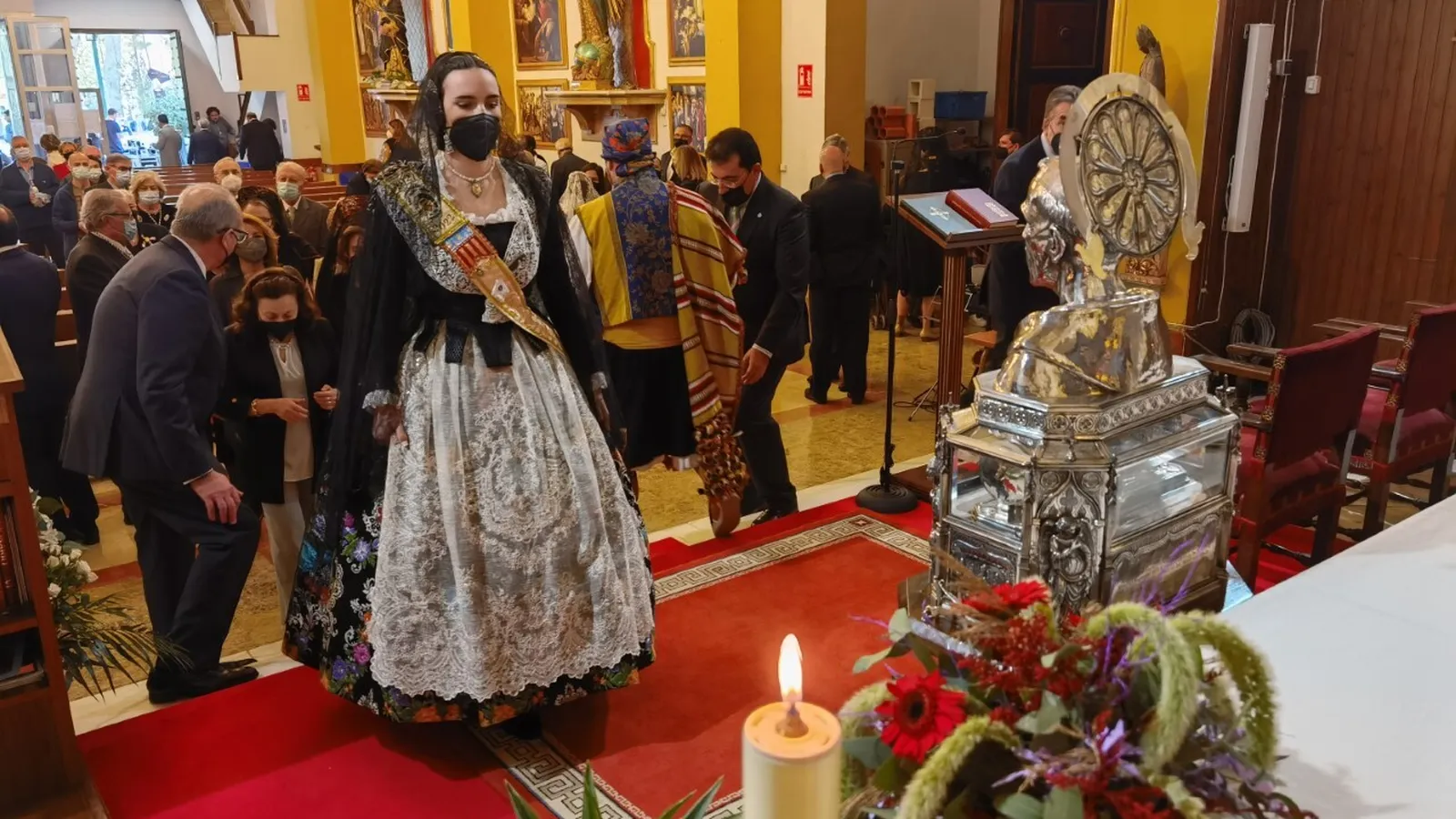 Este año, además, la fiesta tuvo el honor y privilegio de tener en destacado lugar la insigne reliquia de san Vicente Ferrer que custodia el Colegio Imperial de Niños Huérfanos, la cual fue venerada por todos los presentes al término de la Misa. Fue todo una fiesta emotiva, popular, había ganas después de dos años de abstención por la epidemia.
