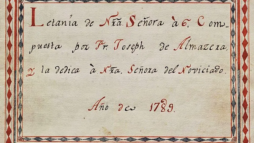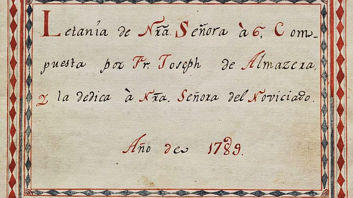 Las Letanías son 42 BME, 5-9. “Letanía de N[uest]ra Señora à 6. Compuesta por fr. Joseph de Almázera, y la dedica à N[uest]ra Señora del Noviciado. Año de 1789”. 43 BME, 5-10. “Letanía de N[uest]ra Señora â cinco de bajo. Compuesta por fr. Josef de Almácera, y la dedica â N[uest]ra Señora de el Noviciado, de donde nadie la sacará sin licencia del p[adre] m[aestro] de novicios. Año de 1791”. “La primera de las letanías fue compuesta en 1789 para 6 voces, dispuestas en dos coros (primer coro: 2 tiples; segundo coro: tiple, alto, tenor y bajo) con sendas partes de acompañamiento 42. En esta composición se aprecia la sólida formación musical del novicio fray José, quien ya contaba en esa fecha con 20 años de edad”, dice Sánchez, quien desarrolla una línea de investigación bajo el epígrafe “-La música en el monasterio del Escorial y en la Orden de San Jerónimo, con especial relieve en las actividades musicales de los niños”.