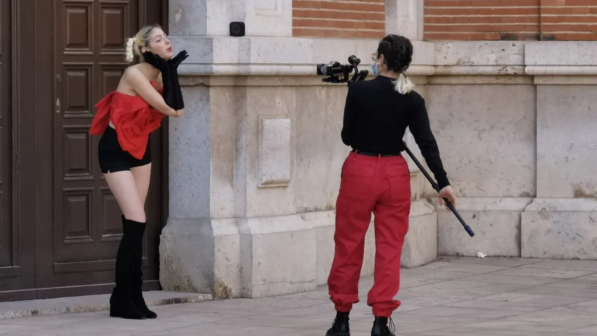 Se dedicaron a hacer un posado de video y fotos adoptando la modelo gestos típicos de este tipo de actividades, de tipo erótico sensual, estando el lugar lleno de gente que esperaba que el desfile procesional accediera al templo matriz de la Diócesis, si saberse bien que estaban allí como una forma de provocación o que no se habían enterado de la celebración religiosa y la pronta llegada de la cruz alzada. Por parte de quienes esperaban la llegada de la procesión no se produjo ninguna tensión con las jóvenes y la actuación de la policía fue cortésmente disuasoria, más bien explicativa, de que no era aquel el momento ni el lugar para hacer una sesión gráfica tan llamativa, rogándoles esperaran que terminara. Ello hizo con toda probabilidad que no se produjera ningún escándalo o enfrentamiento.