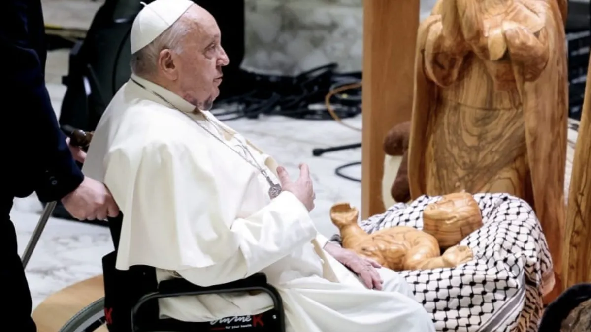 EL Papa ante el belén 'palestino' y una crucifixión blanca 'judía'