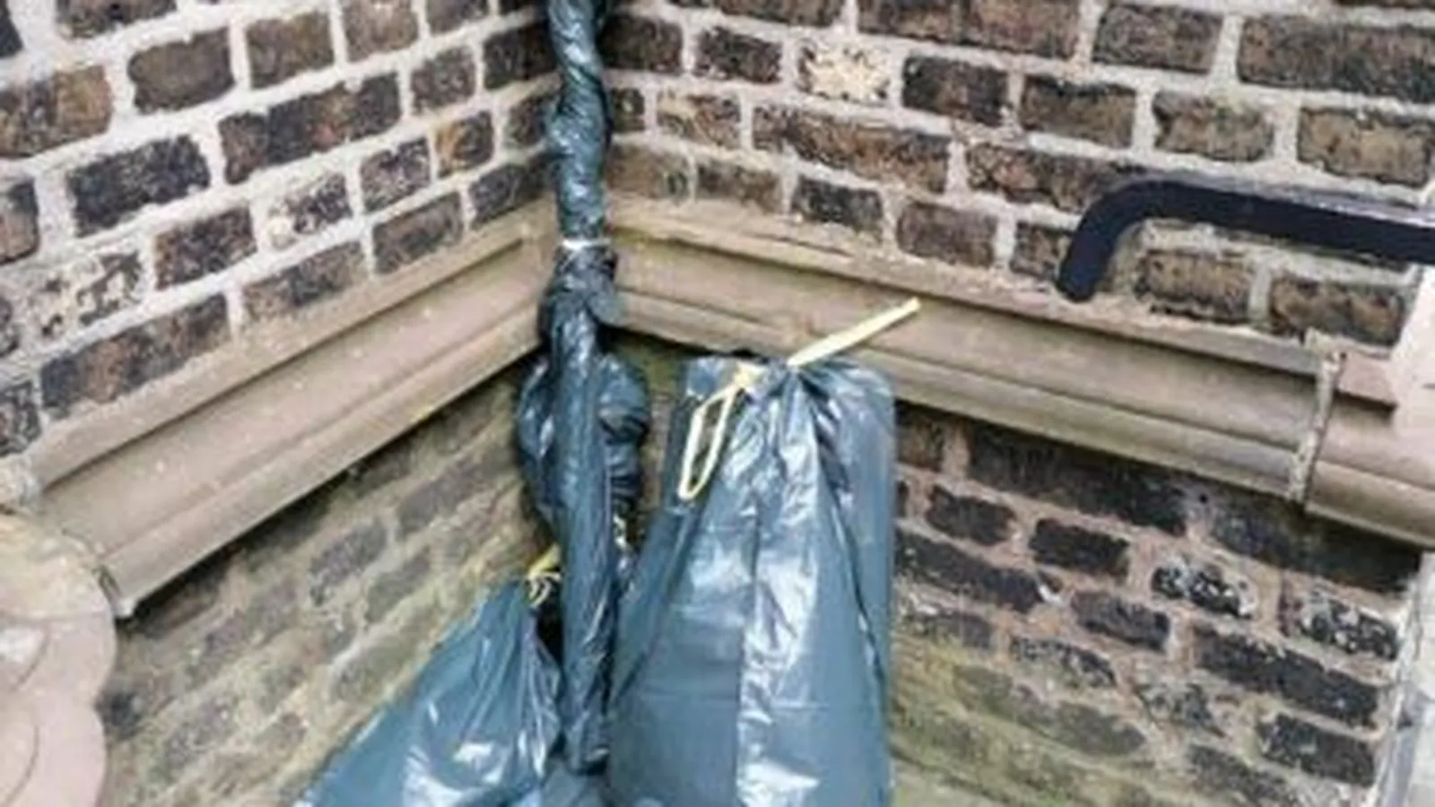 Los bienes robados fueron cuidadosamente empaquetados y apoyados contra el edificio, y los responsables prometieron en su carta que querían hacer una compensación económica por una vela dañada.