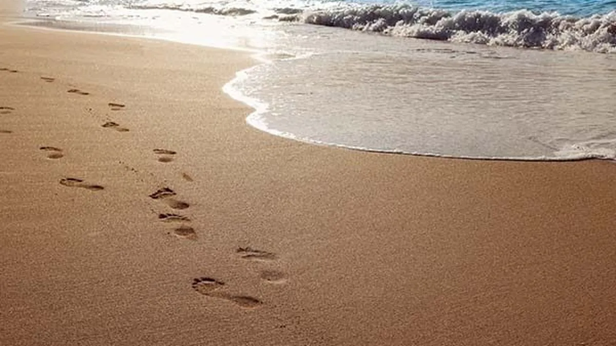 Una noche, un joven soñó que iba caminando por la playa junto a Dios. Sus pasos dejaban en la arena dos hileras de huellas. Cada pisada representaba un día de su vida. El joven se dio la vuelta y, cuando observó que las dos hileras de huellas se extendían a lo largo de la playa, dio gracias a Dios. Dios había caminado siempre a su lado durante toda su vida.