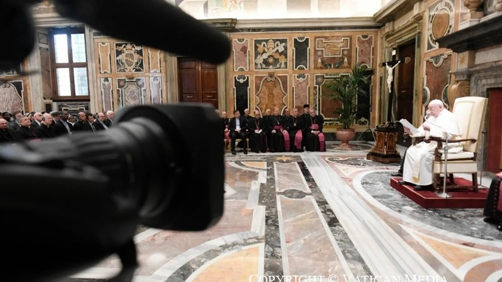 Como comunicadores, estáis llamados a tejer la comunión eclesial con la verdad alrededor de vuestras caderas, la justicia como armadura, los pies calzados y listos para propagar el Evangelio de la paz