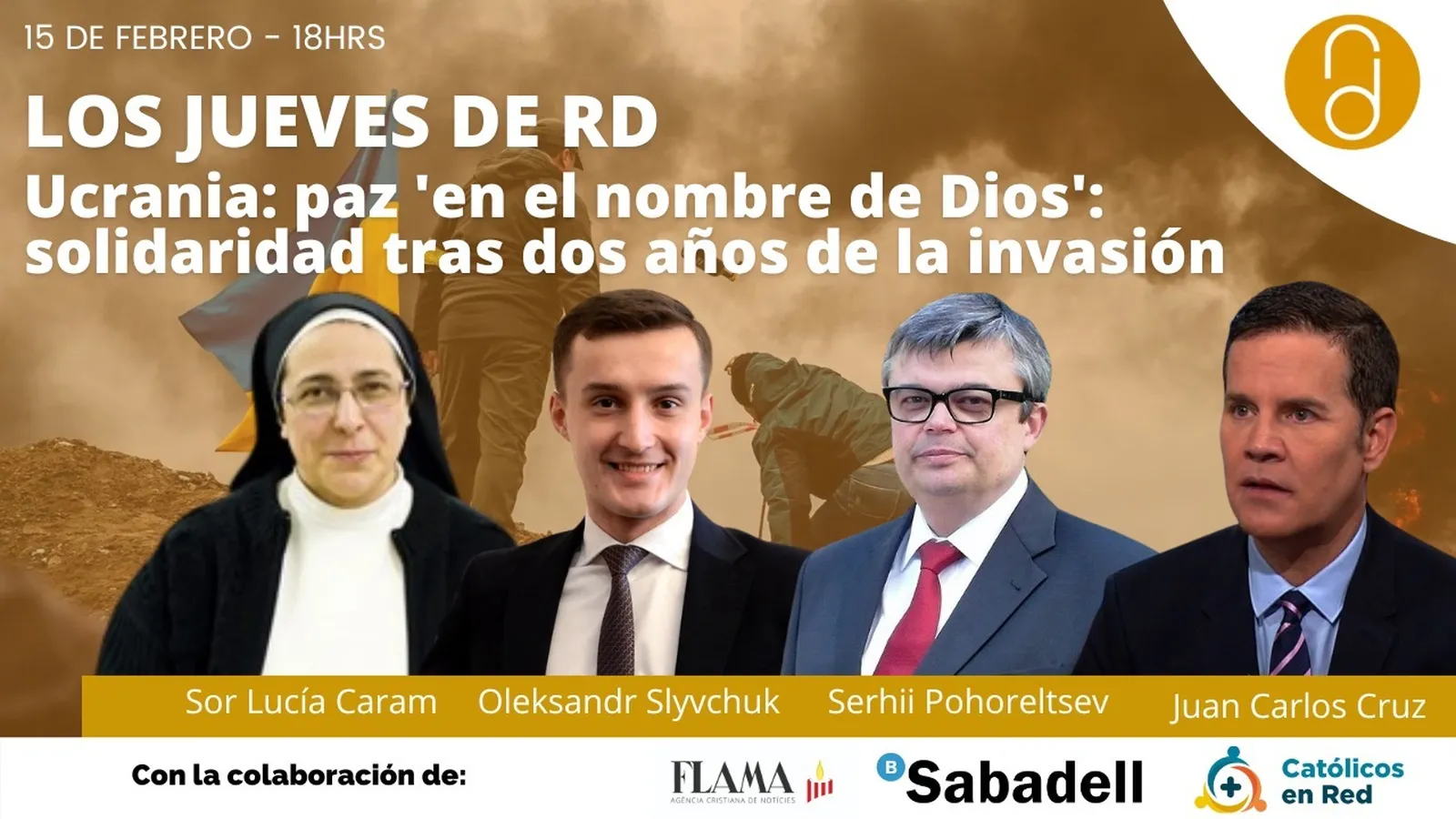 Este jueves, 15 de febrero, los Jueves de RD tendrán como protagonista la guerra de Ucrania, y la lucha por la solidaridad en el país. 'Ucrania: paz 'en el nombre de Dios': solidaridad tras dos años de la invasión' será el lema del debate de esta semana, que como siempre está patrocinado por Instituciones Religiosas del Banco Sabadell, con el apoyo técnico de Católicos en Red y la colaboración de la Agencia Flama. Con un panel de lujo, y alguna sorpresa.