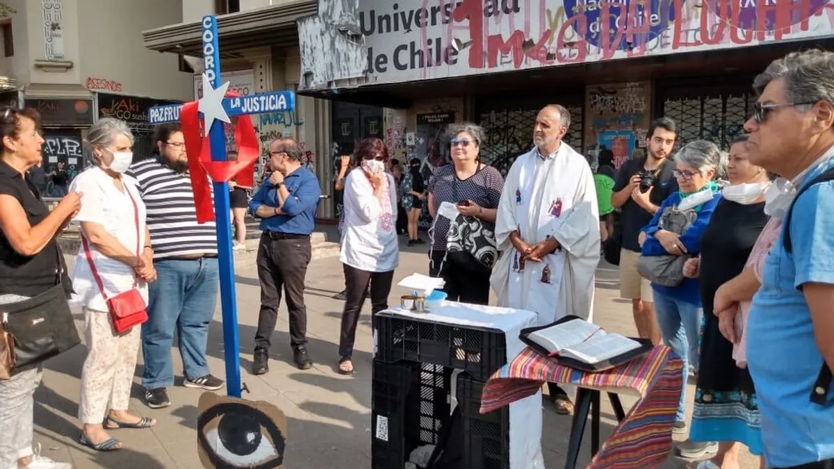 Walker, con integrantes de comunidades de base, laicado y otras religiosas y religiosos de diferentes congregaciones, celebraban la eucaristía en medio de las manifestaciones protegiendo las especies consagradas, del agua y gases disuasivos de la policía.