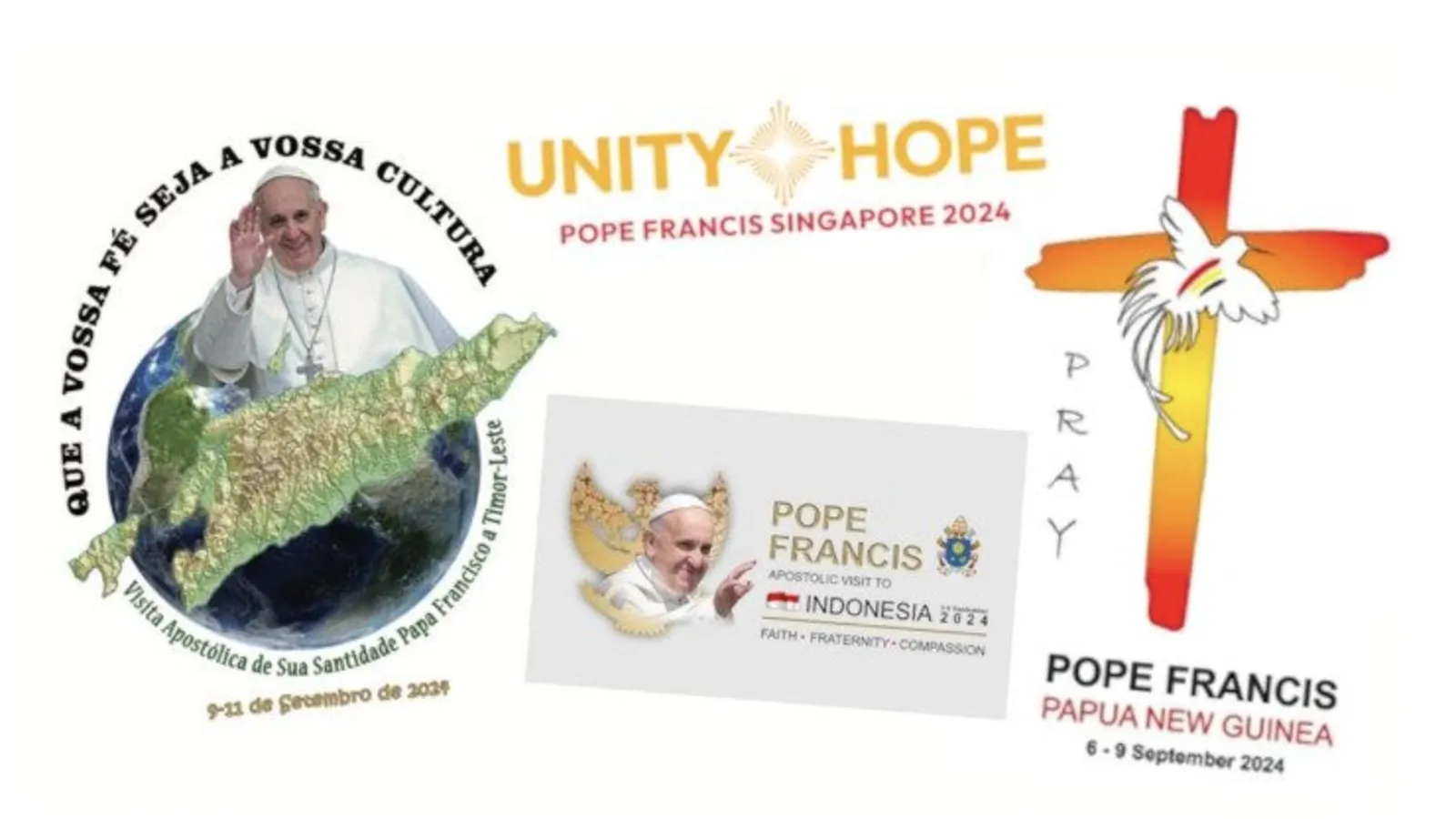 Según anunció el Vaticano, “Fe, Fraternidad, Compasión” será el lema para la visita a Indonesia; “Rezar” para la etapa en Papúa; “Que a su fe siga su cultura”, será el hilo conductor del viaje en Timor y “Unidos Esperanza”.