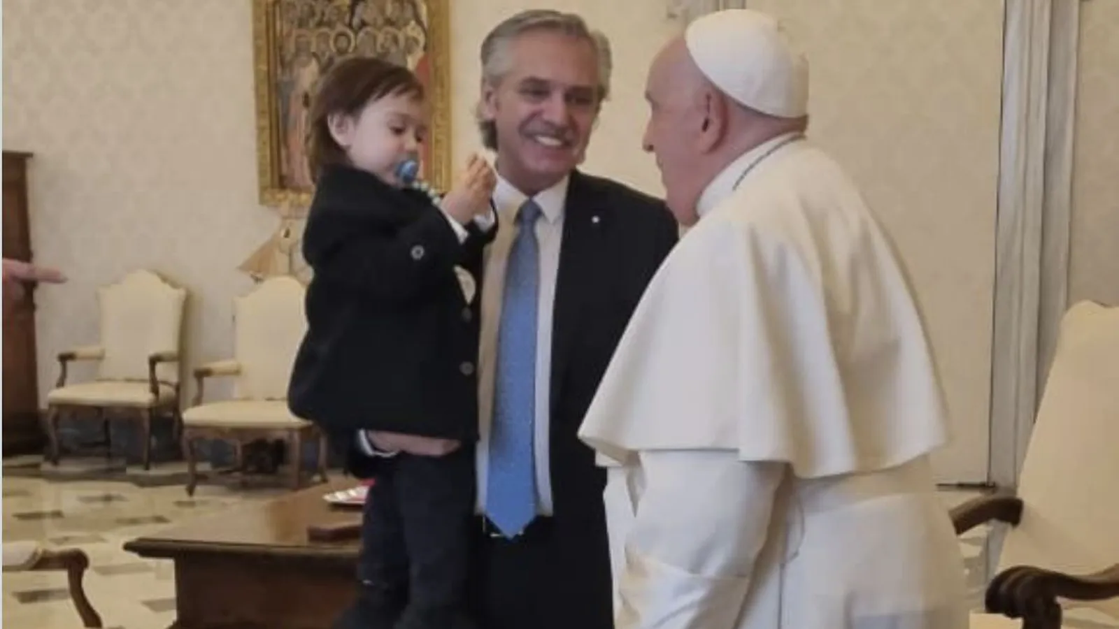 Añadió que estuvo acompañado por su hijo, Francisco, a quien el Papa "bendijo con amor", y señaló que su pareja, Fabiola Yañez, "no pudo viajar porque el sábado fue intervenida quirúrgicamente por una apendicitis". "Me transmitió para ella sus deseos de una pronta recuperación", destacó Fernández.