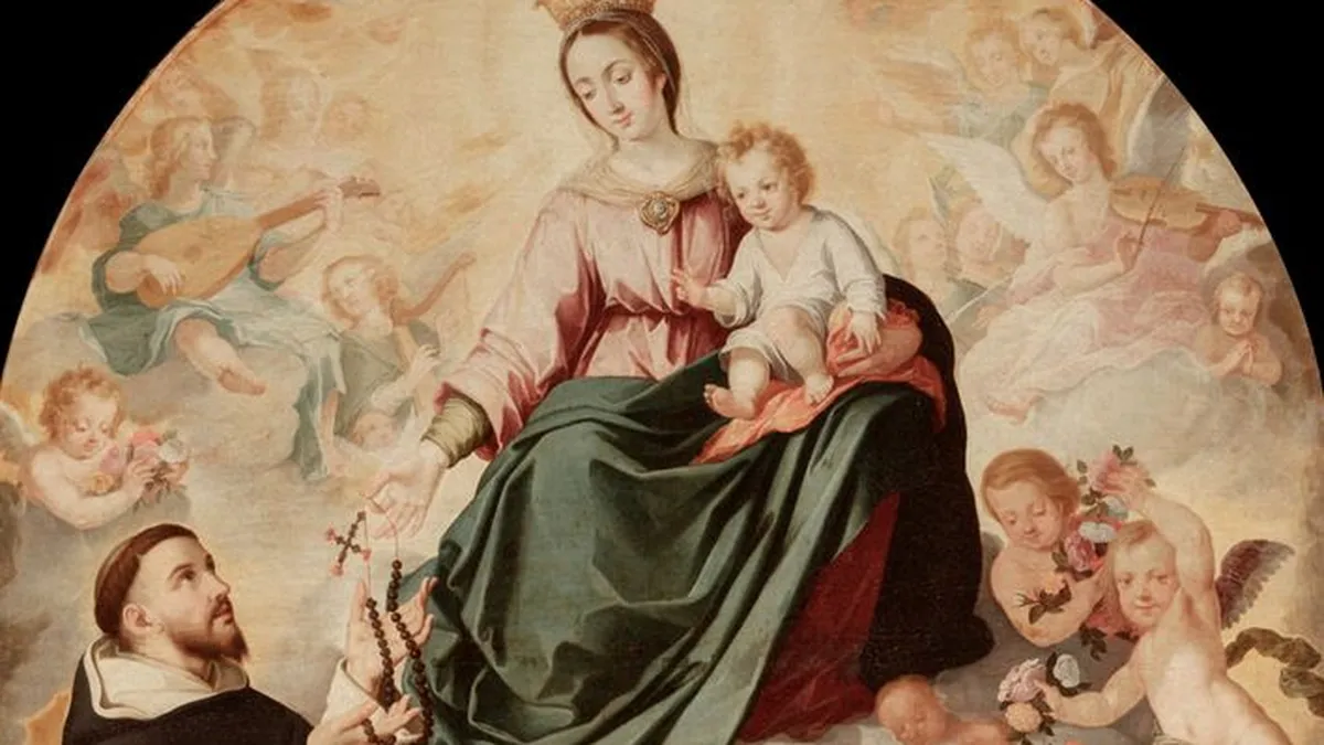 Patrona de innumerables localidades de las regiones más piadosas de España y América Latina, la Virgen del Santo Rosario celebra su fiesta el 7 de octubre. Coincidiendo con el final de la vendimia y sus resonancias paganas (el dios del vino, el inicio del otoño...), esta festividad y su consecuencia, el rezo del rosario, tienen, sin embargo, a sus espaldas una historia enormemente devota que se remonta a la Edad Media.