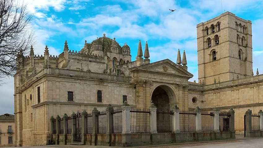 La catedral es el más representativo de los monumentos de la “bien cercada y romanceada” ciudad de Zamora. La severidad y la armonía, características propias del románico, alcanzan aquí cotas muy altas, mezcladas curiosamente con aires bizantinos llegados de Oriente, tal vez con el arte de su desconocido arquitecto. La catedral, llamada “Perla del siglo XII” y “Perla del Duero”, se refleja en el río, y su maciza torre se alza como una atalaya dominando sus aledaños.