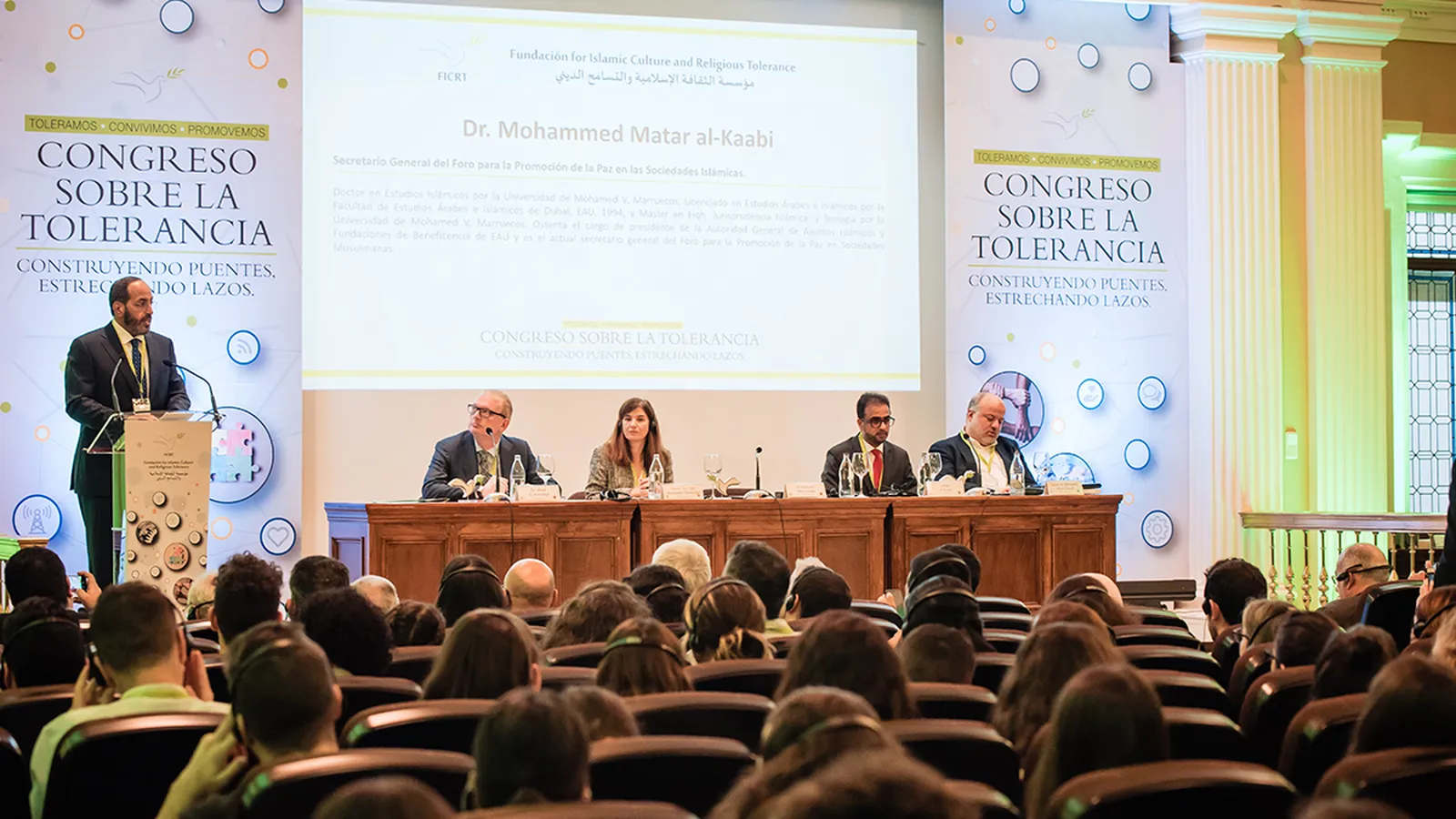 El presidente de la fundación FICRT daba por inaugurado el congreso con una intervención inicial enfocada en la dinamización cultural: “España y Emiratos Árabes Unidos, y muchas otras sociedades, comparten una cultura y una visión del mundo, y es crucial que se mantengan los puentes que unen a ambas culturas”. Sobre la tolerancia, destacaba la importancia de eventos como este, que permitan avanzar a una sociedad mejor: “El miedo conduce al separatismo, a la intolerancia, y al dolor. Y la intolerancia nos daña a todos y a la sociedad en conjunto. Tengamos presente la tolerancia como un proceso de construcción de puentes, y eso es lo que estamos construyendo hoy aquí”.