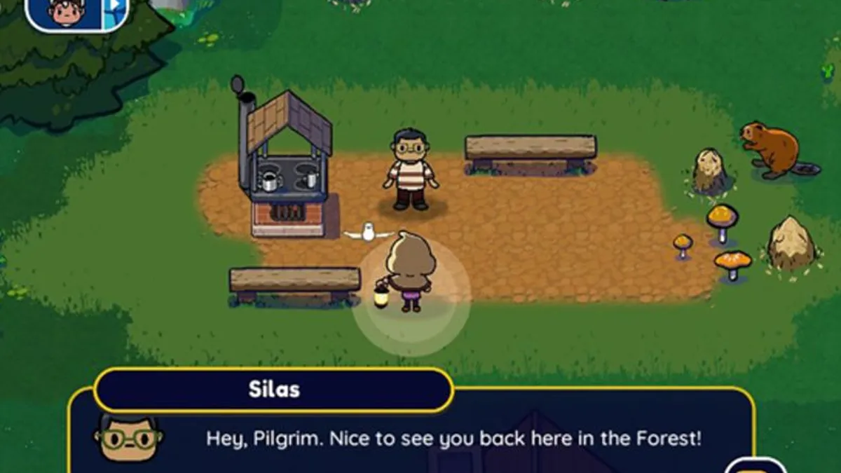 Tu avatar está en casa, preparado para comenzar la aventura. Equipado como un peregrino, va a ir encontrándose por el camino a diferentes santos, con los que interactuará. San Ignacio de Loyola le invitará a rezar y San Francisco de Asís le pedirá ayuda para rescatar perros desatendidos.