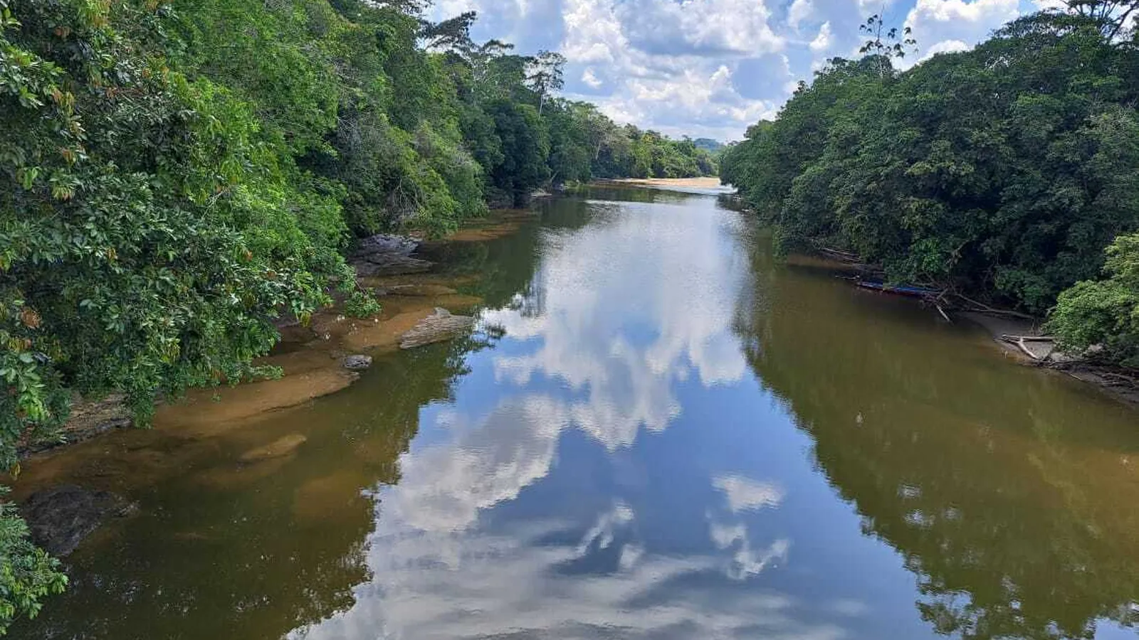 Entonces, algo me llamó la atención: y era que el cielo estaba dentro de las aguas o, mejor, que las aguas también eran cielo, el azul y las nubes se veían en la corriente, el sol y sus rayos iluminaban desde lo hondo y el cauce parecía firmamento. El río y el cielo eran una sola cosa, la quietud de las aguas y la sombra de los árboles en la orilla hacían el milagro: allí donde su corriente se agitaba y no había arboles que lo cubrieran, allí el rio dejaba ver sólo su fondo de piedras y arena, lo de arriba ya no se veía en lo de abajo; bendita quietud y bendita sombra, gracias a ellas mezcladas de sol, el cielo cabía en el rio y era igual bajar la mirada que elevarla.