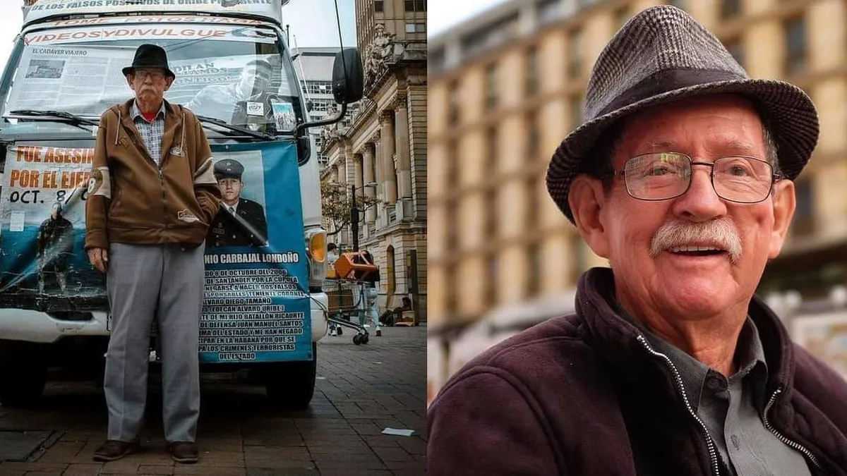 Cogió su furgón Dodge de placas PAH 605, con el que trabajaba vendiendo verduras, y puso en él los restos de su hijo; empapeló el vehículo con pancartas y fotos mostrando su denuncia, y atravesó media Colombia, desde Montería a Bogotá...se quedó en la esquina de la avenida Jiménez con la carrera séptima, allí estuvo por más de 10 años.