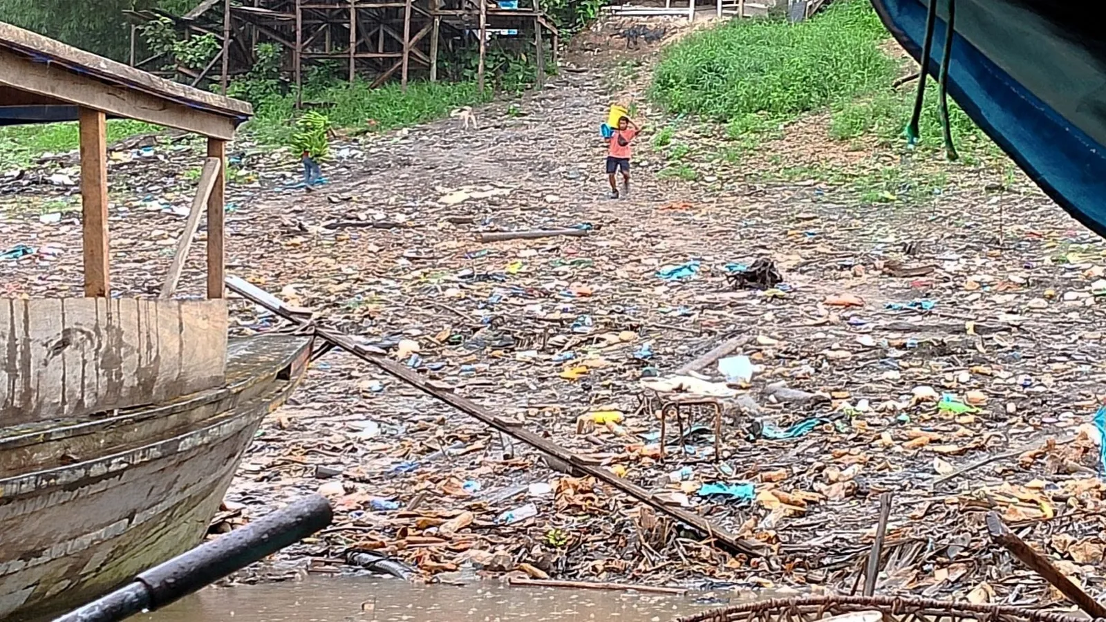 Es decir, cuando hay mucha agua, ¡toda esa basura está también ahí! Habrá una parte que se mueva y se vaya quedando río abajo, contaminando y ensuciando toda la ribera, incluso seguro que porciones apreciables de cochinada llegan hasta el Atlántico, pero es evidente que la gran ciudad que es Iquitos genera muchísimos residuos que van de frente al Amazonas y allá se depositan.