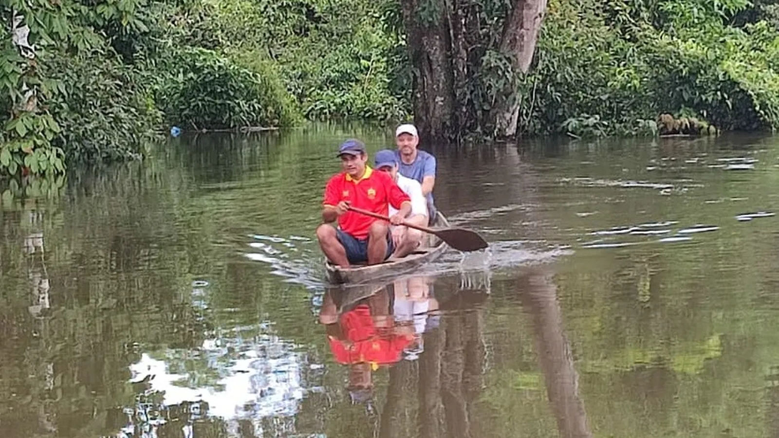 Claro, no es exactamente como el estrés de los yuppies de las películas, que cierran negocios a toda mecha mientras almuerzan frenéticos, con dos llamadas telefónicas simultáneas. Acá nos adentramos en un paraje natural bellísimo, esa especie de caleidoscopio creado por las paredes de esbeltos árboles que se reflejan primorosamente en el agua negra y pacífica. Vamos conversando y disfrutando de la mutua compañía la hermana Berta, Ramón -seminarista en año pastoral-, el párroco Matías y don Aurelio, nuestro motorista.