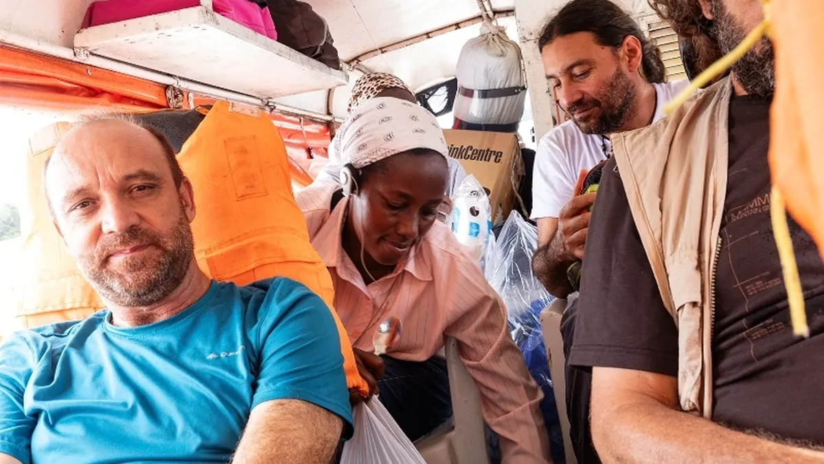 Durante dos días bajamos el Putumayo en el bote Ruah Sumak Kawsay (“Espíritu Buen Vivir”, en kichwa), una travesía larga pero cómoda, con buenos asientos, motor 40 y muy buenas vibras en el grupo, tinto va tinto viene. Entramos en varias comunidades de ambas orillas: Ipiranga, Urco Miraño… Nos acompañan dos religiosas africanas misioneras de la Consolata, Lois y Gladys. Apenas llegamos a Puerto Alegría, donde pasamos la noche y ellas se quedarán una semana, preparan una rica cena y la comida del día siguiente. El grupo se fragua, el río nos une.