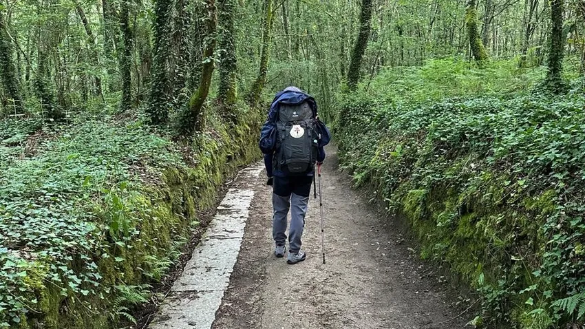 En el transcurso de tantos días te vas haciendo con un grupo de amigos. Se establece una complicidad única. En Villadangos, pasado León, me dio una gastroenteritis: fiebre, vómitos… No dormí nada y me levanté hecho mazamorra; todos se fueron, pero mi amigo argentino permaneció conmigo: “Vamos hasta San Martín, 5 kilómetros, y si no puedes, ahí nos quedamos”. Y así me fue animando en cada etapa, hasta que alcanzamos Astorga, que era lo programado (28 km). Se llama Santiago Palumbo, recorrimos ya juntos todo el trecho restante (con subida a O Cebreiro incluida, sin mochilas), y hasta hoy continúa la amistad. Él ha regresado hace unos días y ha completado el tramo portugués (suya es la foto) para conmemorar aquella vivencia, ¡qué envidia!