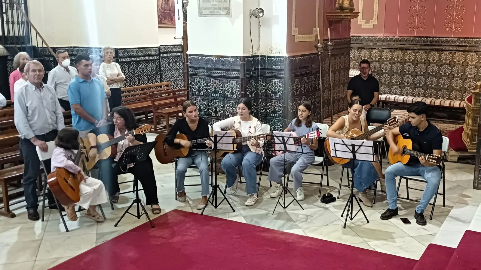 No hay forma de distinguir la realidad de la creación, pueden hacernos tragar ficciones y engañarnos impunemente. Me pregunto cuánto tiempo llevan haciéndolo… Pero esta foto no está manipulada: ¿será el único coro del mundo en el que absolutamente toditos tocan la guitarra? Son de la parroquia de Fuentes de León (Badajoz), cuya generosidad me dejó también estupefacto. Y eso merece una entrada completa, próximamente.
