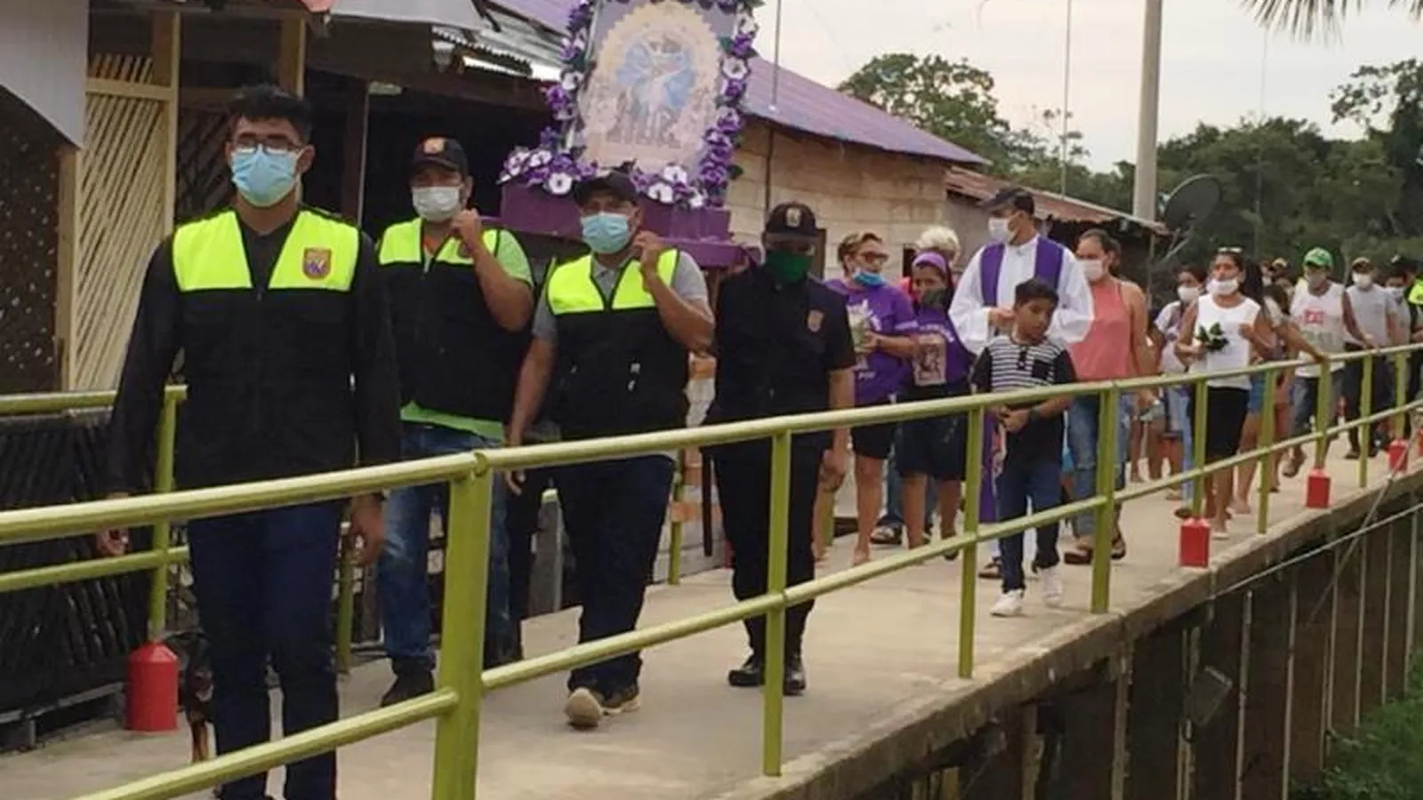 El caso es que el virus no ha terminado, y de hecho las actividades habituales de la fiesta patronal están reducidas a la mínima expresión: celebración comunitaria de la reconciliación, misa y recorrido de la imagen del Señor de los Milagros por el pueblo con un grupito de seguidores. Nos vamos deteniendo en distintas casas, donde noto que se ora con reverencia, en silencio. Todo el mundo es más consciente que otros años de que necesitamos mucho la bendición y la protección de Dios, y ahí no hay religiones que valgan, “el Señor de los Milagros une diferencias”.