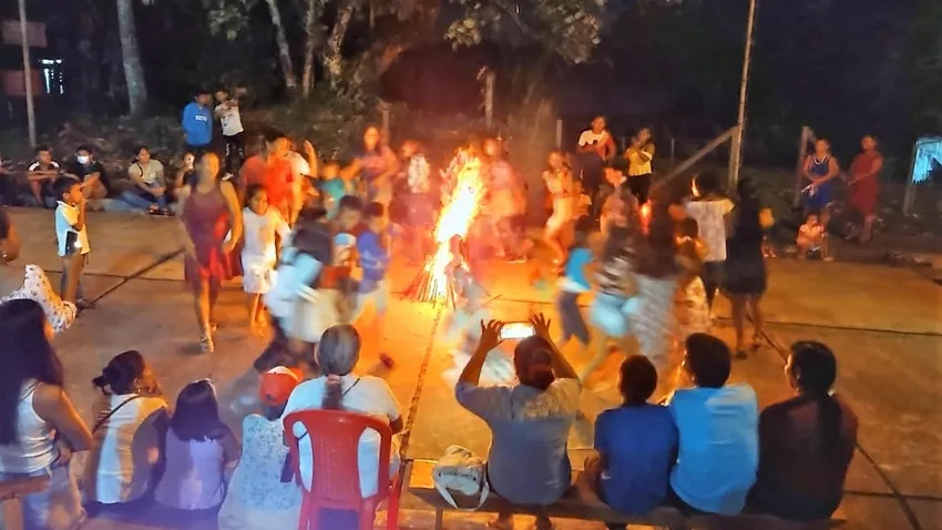 Bajo las estrellas, envueltos en la oscuridad, meditamos las muertes de nuestra Amazonía, de nuestro pueblo. Pero en el momento en que las luces se prenden, el símbolo tiene tal poderío que no hace falta explicar nada. Nomás se siente confianza en la bondad de Diosito, que jamás nos abandona, ni siquiera en las pandemias más crueles, cuando el ser humano destruye, viola y despoja por dinero y poder.