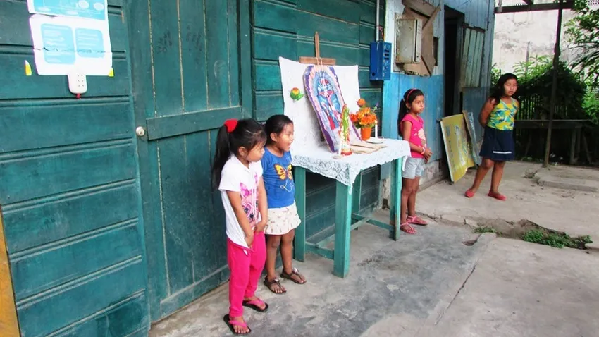 El hermano cruza el Amazonas varias veces a la semana y está logrando resucitar a esta gente. Los domingos arma su proyector, el parlante nuevo que ha resuelto (por decirlo en cubano), y va desarrollando una celebración interactiva de lo más interesante: niños y mayores siguen los cantos, las lecturas, las respuestas, aparecen imágenes en las que se apoya para explicar... Hay algunos profesores que ayudan, la iglesia está pintada, las colectas han pasado de 2,5 a 47 soles, y a nosotros nos hacen los ojos chiribitas.